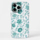 Jacobean Floral Big Pattern Teals on White iPhone Case