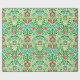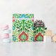 Jacobean Floral Damask, Green and Coral Red Wrappi Wrapping Paper