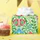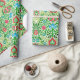 Wrapping paper in a vintage William Morris jacobean floral pattern, digitally enhanced and coloured, in leaf green, coal red, and cerulean blue, on a white background