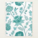 Jacobean style floral large surface pattern design in contrasting teals/duck egg blues on a white background.