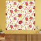 Jacobean style floral surface pattern design in reds, pinks, faux gold colours and cream.