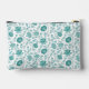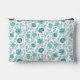 Jacobean Floral Pattern Teals on White Accessory Pouch