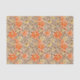 Tissue paper in a William Morris wallpaper design of flowers in mandarin orange and mustard gold, with coffee brown, leafy vines, against a parchment beige background