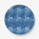 Paper plates in an Art Nouveau, Jacobean damask pattern of stylised, scrolled leaves and flowers, based on a vintage William Morris textile design, digitally enhanced and coloured in light sky blue on a deep cobalt blue background, accented with white flowers