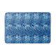 Bath mat in an Art Nouveau, Jacobean damask pattern of stylised, scrolled leaves and flowers, based on a vintage William Morris textile design, digitally enhanced and coloured in light sky blue on a deep navy / indigo blue background, accented with white flowers
