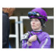 Jacqueline Davis receiving pre-race instructions in the paddock at historic Aqueduct Racetrack.
