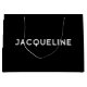 Jacqueline fashion designer style custom gift bag in black and white. Gift wrapping is simple with a customised gift bag to pack your presents. Made from extra strong high quality paper. Modern minimalist black and white design, elegant and practical. Perfect for Jacqueline at Christmas, birthdays, Valentine's day or any other special occasion.