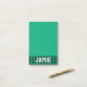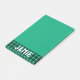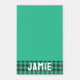 Deep green sticky notepad personalised with your name in large white bold letters at the bottom of the notepad against a background of jade green buffalo check. Personalised notepad with a deep green buffalo check detail, your name in large bold letters, and a strong shade of cool green that will make your notes and reminders hard to miss!