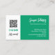 White, black, and jade green business card for any profession with your social media information in the form of your personal QR code and, on the back, a photo. Content creator business card with a charming brush script, jade green accent colour, cute social media icons, and your QR code. Stay connected with your clients and customers with this stylish jade green business card. The card features your photo, social media icons, and a QR code that links to your website or online portfolio. It's the perfect way to make a great first impression and make it easy for people to learn more about you and your business. The jade green colour is both professional and eye-catching, and the minimalist design is sure to impress.