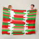 This large fleece blanket has a Christmas pattern of lines in red and green in varying lengths.