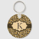 This keychain is all about being a girly girl. Jaguar print makes a striking background for an ornate frame on a polka dot brown ribbon. A monogram is showcased in the frame. Available in alternate colours with matching products.