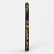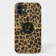 Stylish iPhone 5 case done in a spotted brown and black jaguar print. Graphics of a thin gold band, across the middle, is decorated with a black and gold round disc with a golden brown one letter monogram. Personalise the monogram for yourself or as a purrfect gift idea.