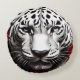 Jaguar Round Cushion black and white with red tints of vivid colour.