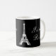 A cute mug featuring a picture of the Eiffel Tower in white with the words "J'aime Paris" on both sides. The background is black but you can customise it to any colour you wish.