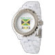 Women's watch shows the green, yellow and black Jamaican flag with the word JAMAICA below, also in the colours of the flag. Above, a spot for you to personalise with your name, or, create a custom gift for her by adding someone else's name. Terrific at family reunions, travel groups, and clubs.