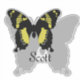 Jamaica Butterfly with the wing spread flying over its shadow. Within the shadow a is a place for a name, default name is "Scott" and can be personalised for your initial.