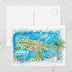 Jamaica Illustrated Travel Map with Roads Holiday Postcard