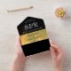 Jamaica all in one wedding invitation with Jamaican Rasta colours: black, gold, red and green. Personalise it with your event details and your wedding registry QR code.