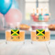 Add your name in green letters to these two whiskey glasses for a personalised effect or gift, above the Jamaican flag with the word JAMAICA underneath, in the colours of the flag. Great way to share your love and pride in your ancestry, culture and heritage. Terrific for clubs or travel groups and reunions of family, friends and groups. Cool housewarming gift for a home bar.