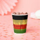 Jamaican Rasta colours red, green, yellow gold and black paper cup with beach and palm tree background. Great for a Jamaica vacation or lovers of island / Caribbean culture.