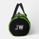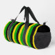 Jamaican flag coloured yellow, black and green striped duffel bag, with customisable monogram text on one end for you to add your own initials, name or message