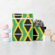 Patriotic JAMAICAN wrapping paper showing the combination of the MAP OUTLINE and the flag of JAMAICA in a tiled pattern. Ideal for national celebrations, Birthdays and Christmas, and for any occasion where stylish, patriotic wrapping paper is required. (Please note flag has been rotated to achieve the correct seam.)