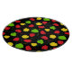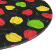 Colourful Caribbean themed kitchen cutting board patterned with red, yellow and green Jamaican scotch bonnet chilli peppers on black