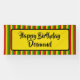 Jamaican rastafari Happy birthday party banner with rasta flag coloured stripes in red, yellow and green. The text on top is totally customisable so the banner can be used for any party celebration