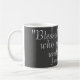 This is a beautiful dark grey and white Christian faith coffee mug with a powerful Bible quote from James 1:12: