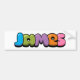 The name James in colourful bubblegum lettering. The colours can be changed.