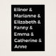 Elinor and Marianne and Elizabeth and Fanny and Emma and Catherine and Anne.