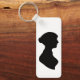 Jane Austen adds class to your style with her famous silhouette decorating this keychain. The reverse declares her goal in writing her novels with a quote from "Mansfield Park": Let other pens dwell on guilt and misery. I quit such odious subjects as soon as I can, impatient to restore everybody, not greatly in fault themselves, to tolerable comfort, and to have done with all the rest."