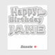 A very nice stylish personalized sticker / sticker for Jane. The name as text and happy Birthday is available in different sizes and also in transparent. Perfect for you, your best friend, wife, sister, mother, aunt, grandma, fiancée, cousin, partner or whatever you want to surprise with a personal and individual gift. Please check our shop for more products as a gift idea with this name. Here you will find many more personalized products and designs.