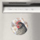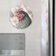 This round magnet features Janet the barred rock hen who seems to love posing for pictures. Great for chicken lovers!