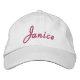 Janice name in embroidered in pink in a decorative cursive script font for your favourite person named Janice.