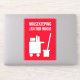 Janitor Room Housekeeping door sign vinyl sticker. Add your own custom text and colours optionally. Custom signs for janitor storage room or maintenance closet at hotels, motel, bed and breakfast, hospitality business, hostel, conference, home, office space, restaurant, company, school etc. Red and white or custom colours. Housekeeper equipment design with cleaning trolley on wheel, broom or mop, bucket, towels and bottles.