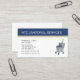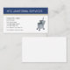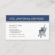 Janitorial service business card template with simple, modern, professional design that includes white background colour you can customise, text and layout you can personalise, and image of a wringer mop pail. Designed as a business card template for a janitorial service, janitorial supplies, or commercial cleaning services.