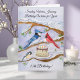 This hand-painted watercolor features a trio of favorite backyard birds a Blue Jay, Cardinal, and Black-Capped Chickadee gathered around a vanilla and chocolate birthday cake topped with glowing candles. It’s the perfect 25th birthday card for someone who loves nature, birds, and beautifully illustrated art.
