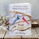 This hand-painted watercolor features a trio of favorite backyard birds a Blue Jay, Cardinal, and Black-Capped Chickadee gathered around a vanilla and chocolate birthday cake topped with glowing candles. It’s the perfect 95th birthday card for someone who loves nature, birds, and beautifully illustrated art.
