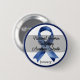 At the centre of the button, a dark blue awareness ribbon stands as a symbol of advocacy, justice, and support for survivors. The ribbon represents the global effort to prevent trafficking, protect victims, and prosecute offenders.
