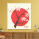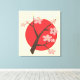 Japan cherry blossom sakura branch floral wrapped canvas print, featuring a brown cherry/sakura blooming branch with pink flowers and a red circle on the background on pale yellow. An elegant design in Asian Japanese oriental style. Design courtesy of vectorportal.com.