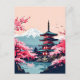 Japan Cherry Blossoms and Pagoda with Mount Fuji Postcard