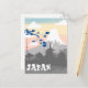 Wonderfully artistic postcard of Japan depicting a pagoda and Mount Fuji.