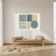Rendered in a sophisticated palette of deep indigo blue and warm beige, this artwork captures the essence of Wabi Sabi philosophy: finding beauty in natural textures and thoughtful imperfection. The style evokes the feeling of traditional textile block prints, bringing a tactile and artisanal quality to your walls.