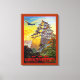 Vintage Japanese Air Transport air travel poster showing a propeller plan and a pagoda temple.