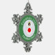 An angel with chrysanthemums for eyes, wears the flag of Japan on a snowflake pewter ornament for holiday and Christmas decor. The Christmas Japanese flag angel flies inside a white circle of squiggly squares, surrounded by a background of green squiggly squares. Add your own text or personalise with a name and customise with the year.