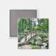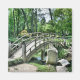 A picturesque Japanese arch bridge gracefully spans over a tranquil pond, its elegant design reflecting in the still waters below. Surrounded by lush greenery, the bridge encapsulates the timeless beauty of Japanese garden aesthetics.