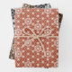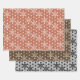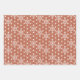 Wrapping paper in a traditional Japanese Asanoha, or star pattern in terracotta / rust outlined in white, dark chocolate brown outlined in light beige, and white outlined in black