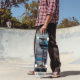 A lush blue and grey vintage Japanese print personalised skateboard. Moonlight, mountains.