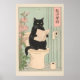 Japanese Black Cat on Toilet Print Funny Bathroom